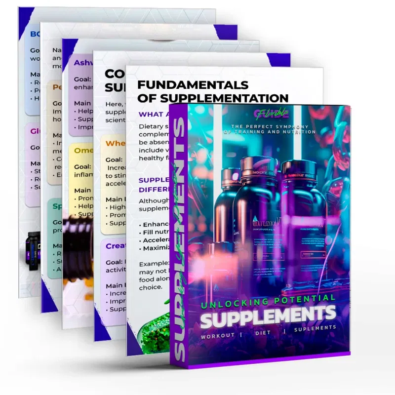 A list of both conventional and natural supplements focused on maximizing muscle gain, energy, and performance.